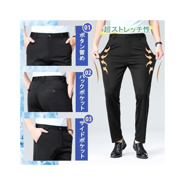[HMT] スラックス メンズ ズボン 夏服 冷感パンツ スーツパンツ 接触冷感 薄手 ロングパンツ メンズ ビジネス 仕事着 パンツ ノータック ストレッチ ウォッシャブル スリム 美脚 大きいサイズ 春 夏