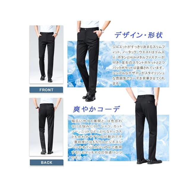 [HMT] スラックス メンズ ズボン 夏服 冷感パンツ スーツパンツ 接触冷感 薄手 ロングパンツ メンズ ビジネス 仕事着 パンツ ノータック ストレッチ ウォッシャブル スリム 美脚 大きいサイズ 春 夏